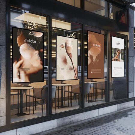 2: Make 3 posters for «moloko» beauty salon. These posters are located on the luxury street outside. The colors are brown beige and balck with white. With trendy graphic elements--ar 7:4