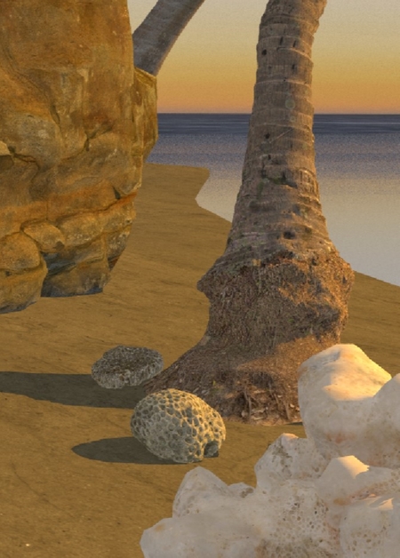 Пляж на закате — Рендер 3D сцены, созданный в программе Houdini Side Fx.