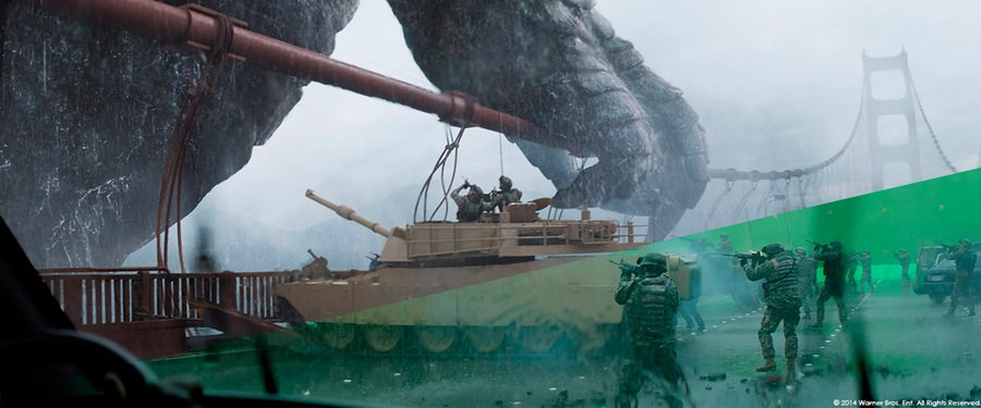 Кадры из фильма и закулисного видео «Годзилла», 2014, режиссер Гарет Эдвардс, супервайзер по спецэффектам Джим Ригель.