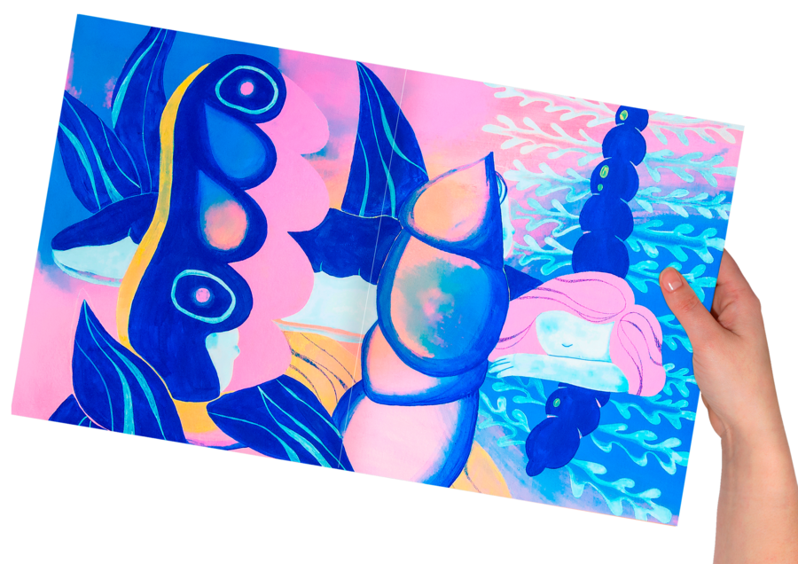 Серия картин 50×70см. Акрил, цветные карандаши.