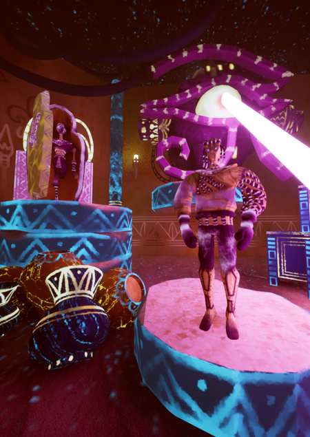 Арена-шутер в эстетике кибер-египта, в которомы мы играем за фараона, чью гробницу захватил вирус — «тьма».