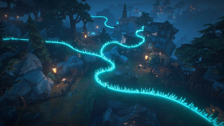 Комплекс окружающих звуков, создающих атмосферу и ощущение места. Это не просто один шум, а целый звуковой ландшафт. Например, пещере можно услышать капающую воду, далёкие звуки подземного озера, эхо, пролетающих летучих мышей и переливающиеся кристаллы, издающие характерный хрустящий звон — всё это работает вместе, чтобы погрузить игрока в атмосферу.