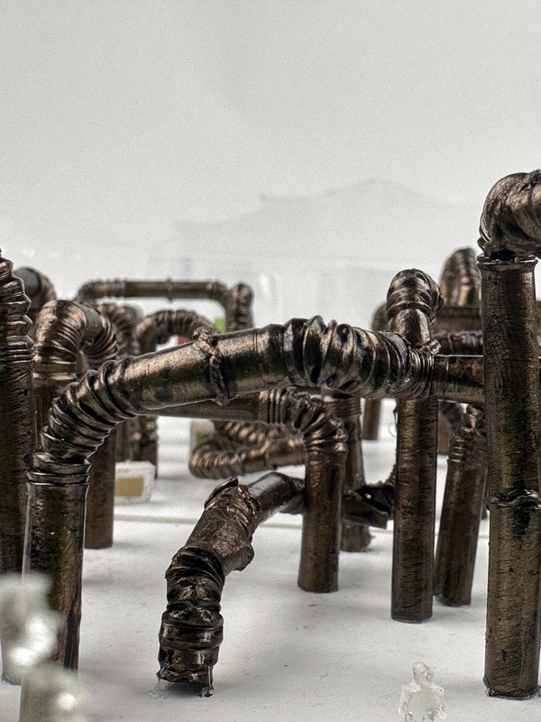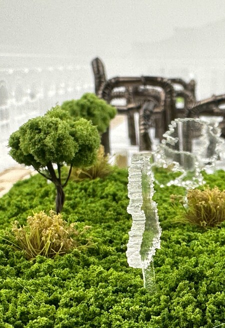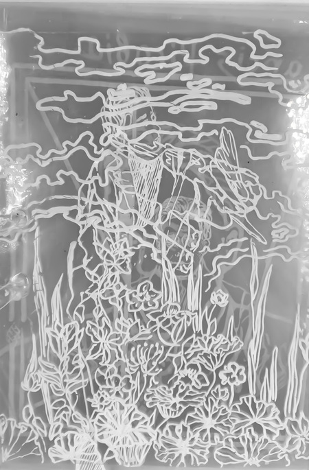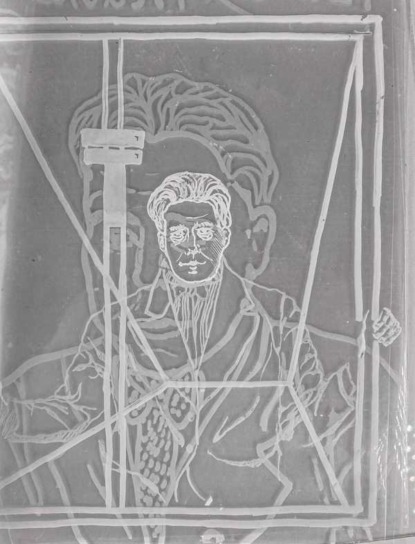 Одним из ключевых периодов творчества моего художника стали прозрачные картины, в которых он наслаивал образы друг на друга при помощи многократной лакировки холста. Я решила повторить этот концепт и изобразить фотографии художника на прозрачной пленке и применить принцип наложения, тем самым повторив излюбленный метод Пикабиа.