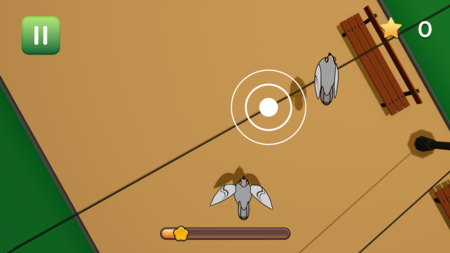 Кликни по голубю, чтобы тот сбросил «снаряд». Если под голубем в этот момент идёт прохожий — он поражается. У голубей отображается индикатор снарядов. Их нужно периодически пополнять бабушкиной прикормкой.
