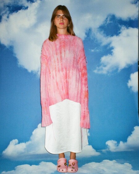 «Сначала я хотела добавлять в свитера еле заметные узоры, фактуры, текстуры, которые есть, например, в русской архитектуре. Думаю, эта составляющая связана с моим личным периодом адаптации в момент, когда я запускала марку, вернувшись в Россию. Помню, что мне было очень грустно и депрессивно. Единственным моим развлечением были снимки на телефон, которые я делала и отправляла своим друзьям-европейцам, чтобы показать нашу действительность. Например, как бабушка вяжет косынки кислотными нитками на Владимирском проспекте. У меня накопилось много таких фотографий, некоторые из них вошли в скетчбук и нашли отражение в эстетике марки».