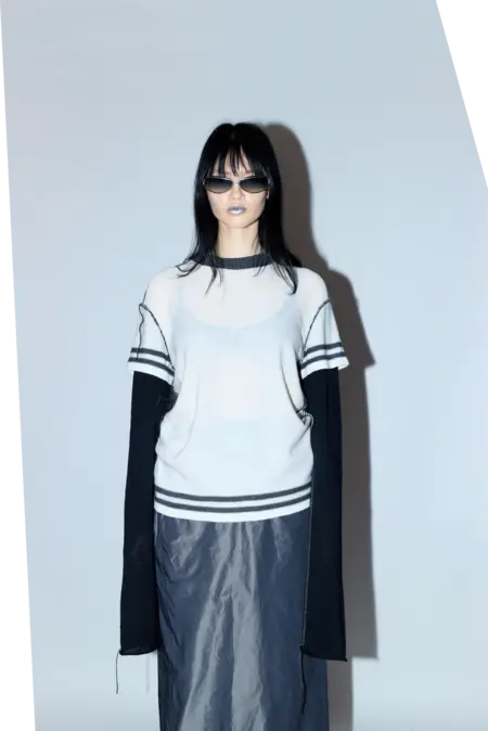 #78 Grungy Свитер с двойными рукавами длиной до середины бедра и отделкой контрастной пряжей.