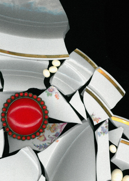 Коллажи к 100-летию Сергея Параджанова выполнены в технике, которую использовал и сам Параджанов в своих работах. В центре коллажей находятся кадры из фильма «Цвет граната», девушка и монастырь, собранные из разбитых тарелок и бусин. Они не только изображают моменты из знаменитой картины Параджанова, но и передают стиль режиссёра и его подход к выстраиванию выразительных композиций.