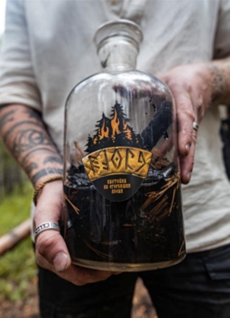Идея Скандинавский паб FJORD известен своими настойками и ликёрами на дикорастущих ягодах и травах. Ингредиенты для них бармены собирают в диких лесах Приполярного Урала. Поэтому паб решил привлечь внимание к проблеме лесных пожаров и приготовил настойку на сгоревших лесах, чтобы донести сообщение: если не беречь лес, то в будущем всем придётся пить исключительно такие напитки.