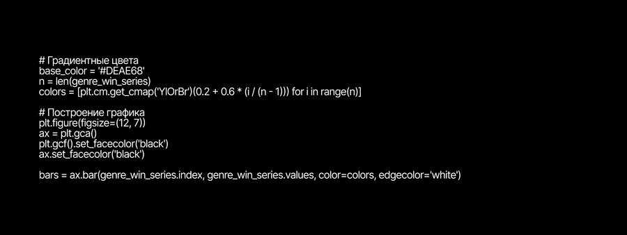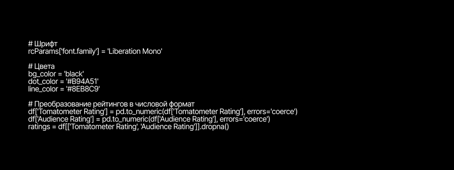 В коде использованы библиотеки pandas для работы с данными из csv-файла, а также matplotlib.pyplot для визуализации данных, matplotlib.colors для работы с цветами графиков, rcParams для настройки шрифтов в визуализации данных.