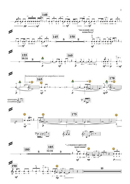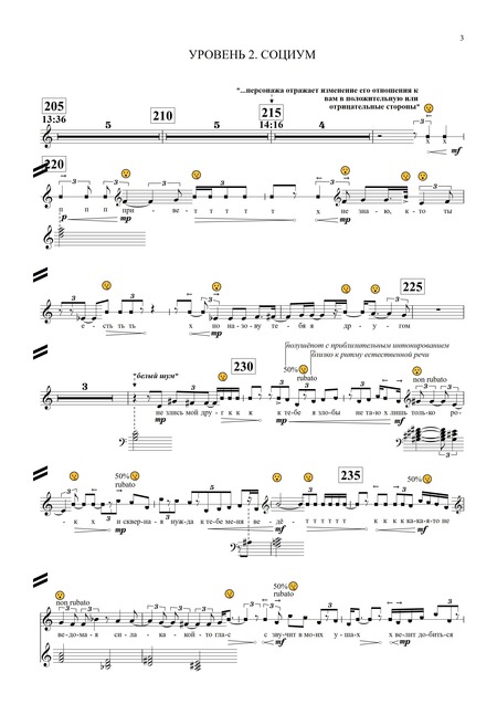 «Поскольку партия электроники была подготовлена заранее, партитура оперы включала только партию вокалиста, однако с ориентирами в ключевых местах.