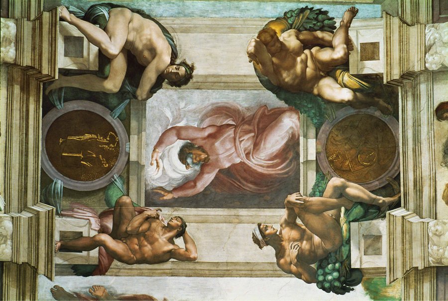 Действительно, у наиболее востребованных мастеров эпохи ренессанса проявлялся интерес к необычным сложным ракурсам и многофигурным композициям. Дополняя перенятое из античных Греции и Рима внимание к анатомии, стремление к реализму, и тяге к играм с пространством за счёт перспективы и свето-тени (квадратура) — они достигли небывалого уровня изображения. Теперь человек был виден со всех сторон и в любом положении, а предметная и интерьерная живопись обманывали даже самый придирчивый взгляд. Дальше, казалось, развиваться уже некуда. Глядя на росписи сводов Сикстинской капеллы, этого и того современники с уверенностью заявляли — потолок достигнут.
