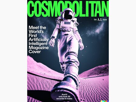 В июне 2021 года выходит журнал Cosmopolitan с обложкой, на которой изображена женщина-космонавт, будто бы снятая на широкоугольный объектив. Надпись на ней гласит: «Это заняло всего 20 секунд». Автором обложки была нейросеть DALL-E.