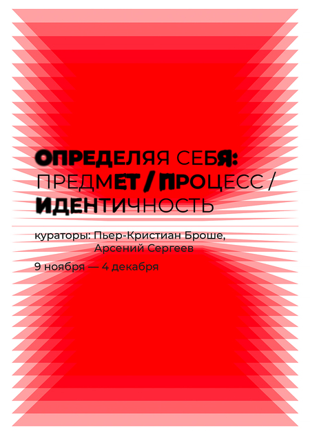 Выставка «Определяя себя: предмет / процесс / идентичность» Кураторы: Пьер-Кристиан Броше, Арсений Сергеев Научный консультант: Диана Мачулина