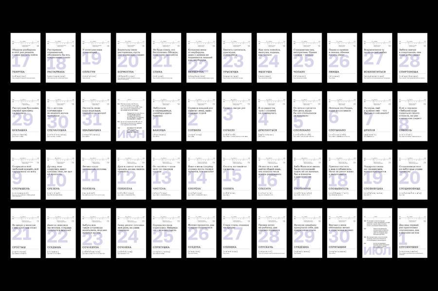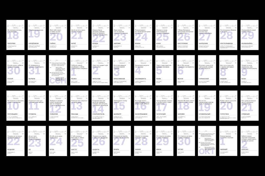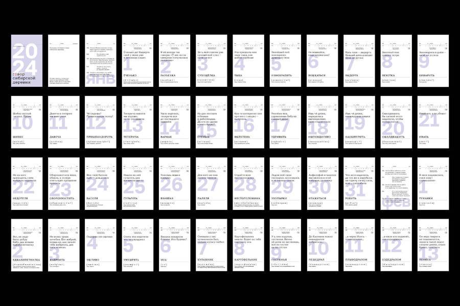 Календарь посвящён особенностям говора сибирских деревень. Огромная часть населения нашей страны говорит на этаком «иностранном» русском, непривычном для тех, что не живёт в этом регионе. Этот календарь — начало пути для тех, кто хотел бы поближе познакомиться с говором жителей Сибири.