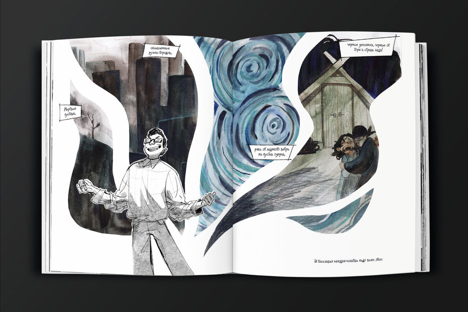 Во-вторых, расскажу немного подробнее про нашу магистратуру. Её выбирают люди, которым нужна вторая ступень образования, но по двум немного разным трекам: мне кажется, что есть те, кому нужны абсолютно новые умения и компетенции, и те, кто переквалифицируется из близкой профессиональной среды. Например, ты маркетолог на стороне клиента, тебе приходится пересекаться с агентствами, дизайнерами — и будет проще работать, если ты обзаведёшься некими компетенциями в области визуального. Или ты архитектор, но после 4 лет в МАРХИ понял, что это не твоё; технически ты умеешь всё — рисовать, работать с формами, с пространством, но хочешь рисовать истории. В обоих этих случаях мы помогаем человеку из другой области, не теряя сложившуюся оптику, а совершенствуя её, приобрести дополнительные навыки и стать уникальным специалистом. Вторая и третья (то есть ДПО) ступени образования часто работают с некоторым отрицанием, с запросом «я хочу выбрать что-то другое, от прежнего устал, не моё»… Мы и в магистратуре, и в ДПО настаиваем на следующем: предыдущий опыт — ценность. Можно использовать оптику архитектора, работая с визуальной новеллой (пример — графический роман «Падающая девочка» блистательного творческого тандема Скойтен/Петерс) или придумывать стратегию продвижения продукта, используя инструменты комикса, особенно в сфере цифрового маркетинга.