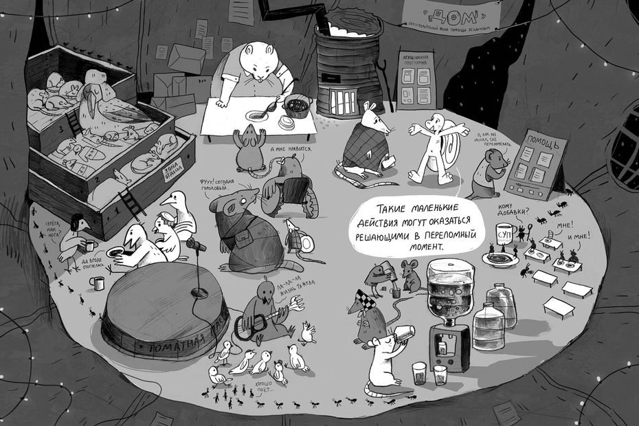 Пару лет назад в рамках международной научной конференции Вышки в нашей секции, посвящённой комиксу, выступал Мэтт Мэдден, автор гениального сборника «99 способов рассказать историю». В нём он 99 раз рассказывает одну и ту же историю — но каждый раз иначе, от конструирования нарратива до присущего жанру визуального решения — потрясающая штука! Так вот, Мэдден говорит: «Я всю жизнь работаю с ограничениями, и понял, что это — лучший подарок, который может тебе сделать судьба. Ограничения заставляют тебя думать: „Окей, так нельзя, а как можно? Как я могу сделать, если нельзя, чтобы вышло так, как я хочу, чтобы было можно?“ Ограничения учат тебя быть гибким и, как вода, просачиваться сквозь них». Это очень правильная тактика вообще для всего в жизни. Когда ты встречаешься с любым вызовом, такой подход переключает тебя от отчаяния и огорчения к позитивному и прагматическому настрою, превращает жизнь в игру — а это позволяет легче относиться к промахам.