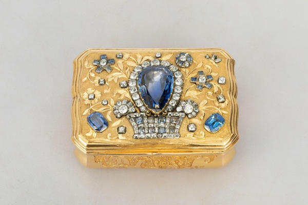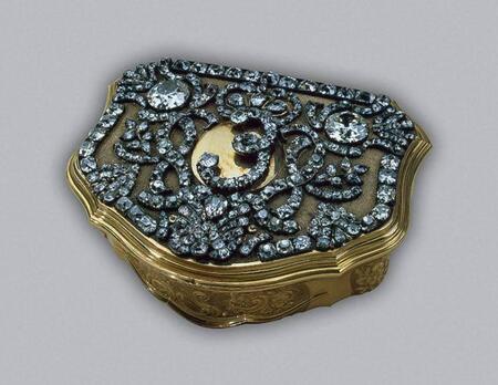 Табакерка И. Позье, Россия, 1740 г.; табакерка с вензелем императрицы Елизаветы Петровны, 1750 г.
