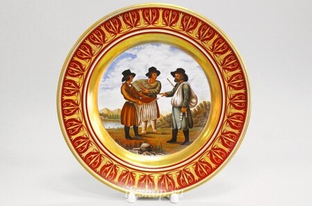 Русский фарфор не только служил своего рода хроникой императорских деяний, но и отражал национальные темы и сюжеты в искусстве. Примером этого служит «Гурьевский» сервиз, который стал данью уважения народу, одержавшему победу в Отечественной войне 1812 года. Эта война также способствовала появлению серии «военных тарелок», на которых были изображены солдаты и офицеры в мундирах всех родов войск. На Императорском фарфоровом заводе стало традицией изображать на чашках коронованных особ и известных деятелей того времени, включая особенно прославленных полководцев. В то время как портретная живопись на фарфоре широко распространилась, искусство фарфора также развивалось в направлении изображения военных и национальных сюжетов. В этот период также начинает развиваться портретная живопись на фарфоре. На Императорском заводе стало принято изображать на чашках коронованных особ и известных деятелей того времени, включая выдающихся выдающихся полководцев. В целом, русский фарфор отражает национальные темы и сюжеты в искусстве, становясь своего рода хроникой истории страны.