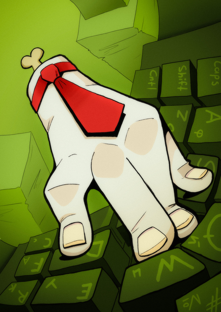 Оставив на рабочем месте свою правую руку, сотрудник офиса беспечно уходит отдыхать, не вспоминая о работе.