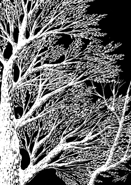 При работе с этими деревьями нелегко было раствориться в творчестве, потому что при каждом прикладывании кисти к листу, я боялась испортить картину, ведь использовала новый для себя материал — тушь.