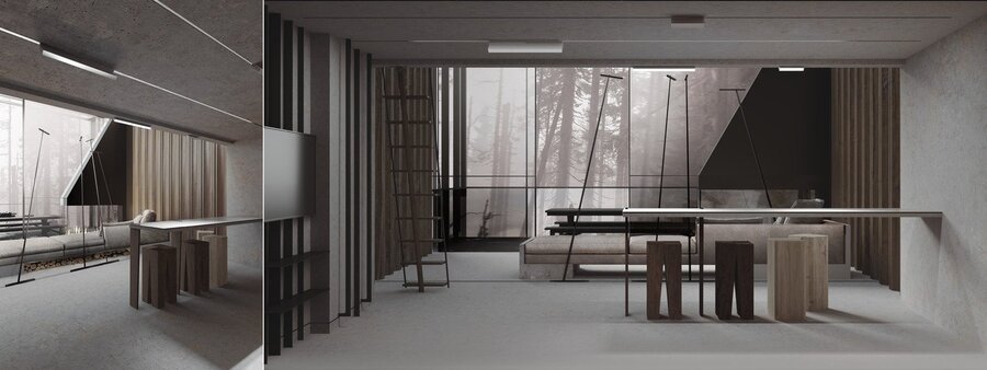 II курс Второй курс посвящен специфике автономных домов, интерьерного и выставочного дизайна. Студенты разрабатывают проекты таунхауса, интерьеры учебного кластера, общественного пространства и выставки. Каждый проект включает в себя чертежи и визуализации с помощью профессиональных программ — студенты осваивают трехмерное моделирование, проекционное черчение, создание BIM-чертеже, изучают основы конструкций и материаловедения. Кроме того, студенты второго курса создают объекты на тему творчества выбранного художника, придумывают концепцию и делают проект выставки этого художника.