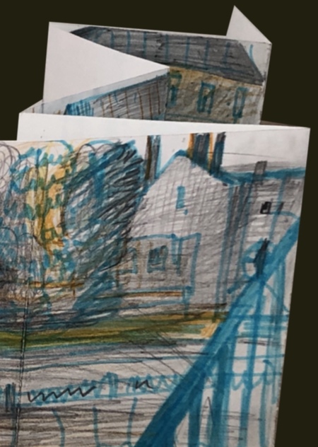 Книжечка гармошкой про панораму Водоотводного канала с Садовнического моста в августе 2024 года. Про симметрию, длину и глубину, город, свет и повседневность.