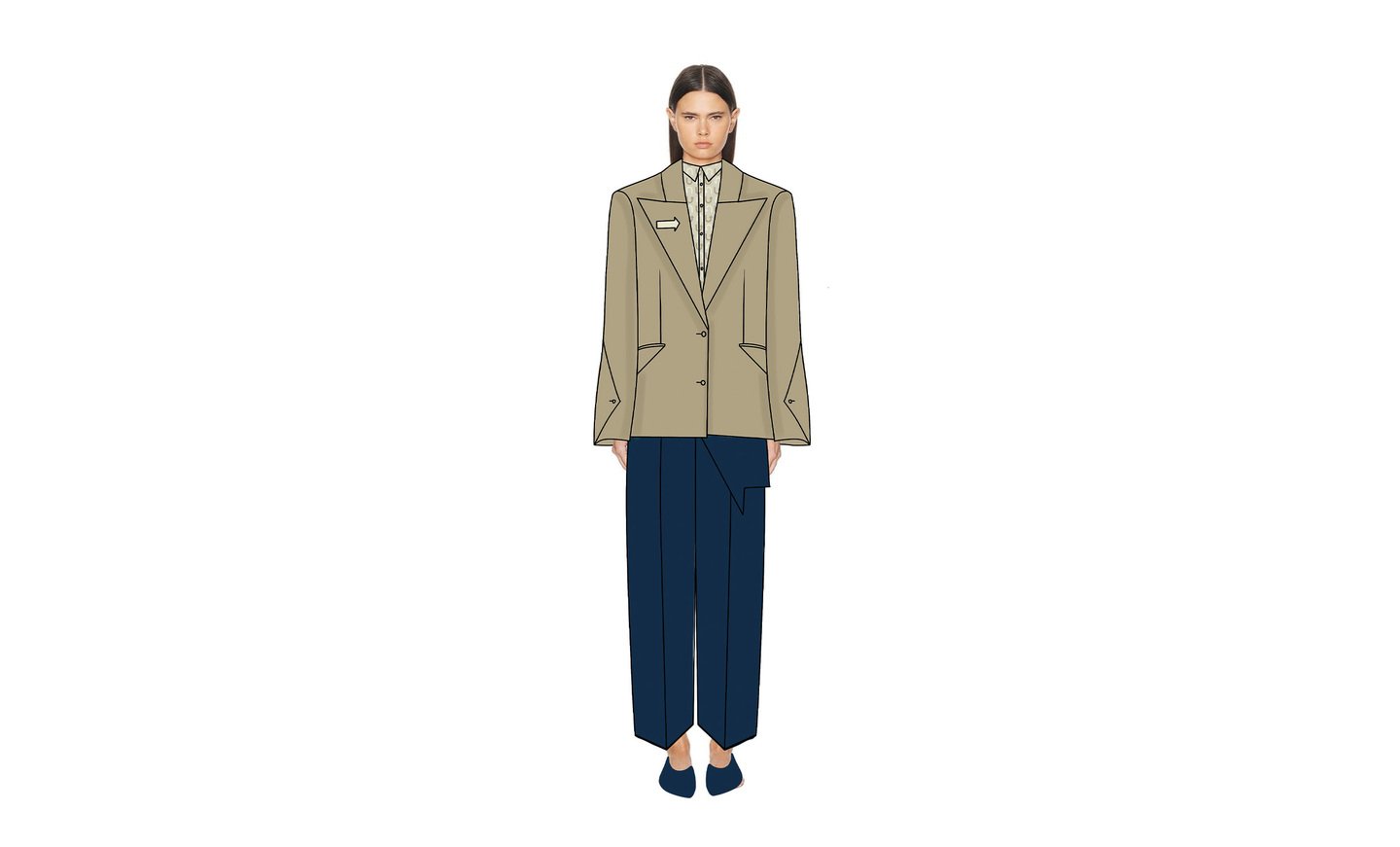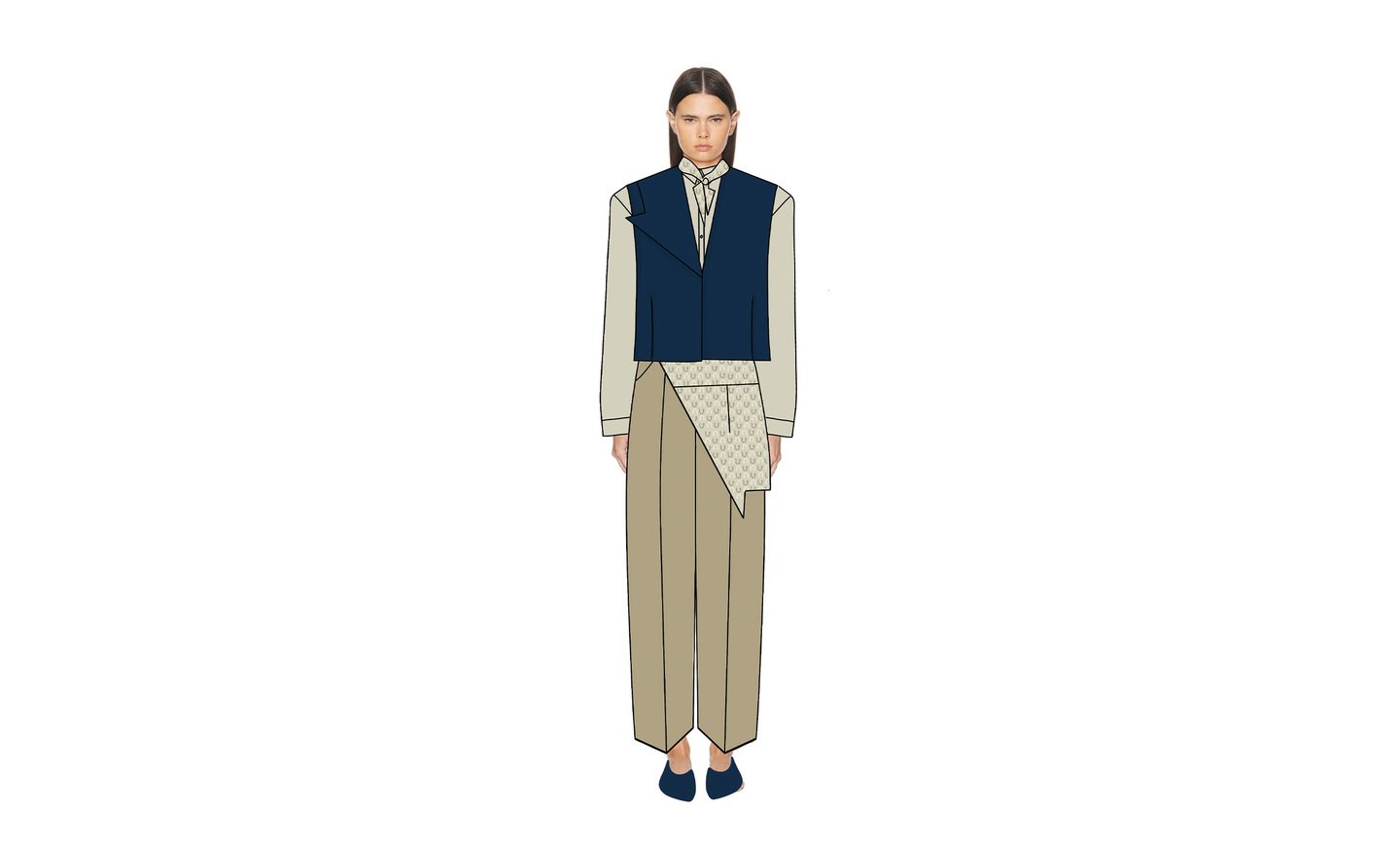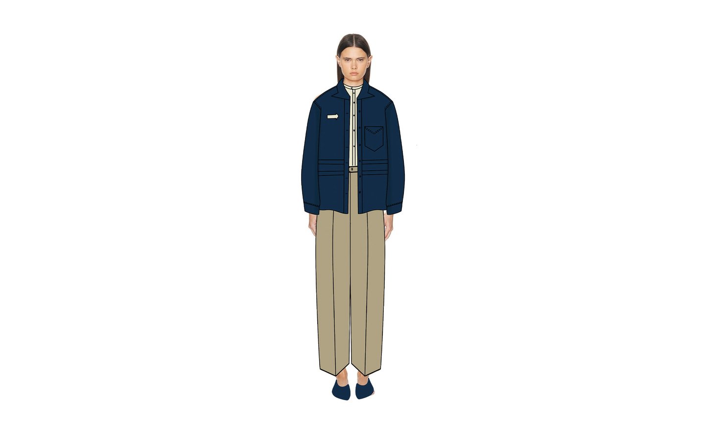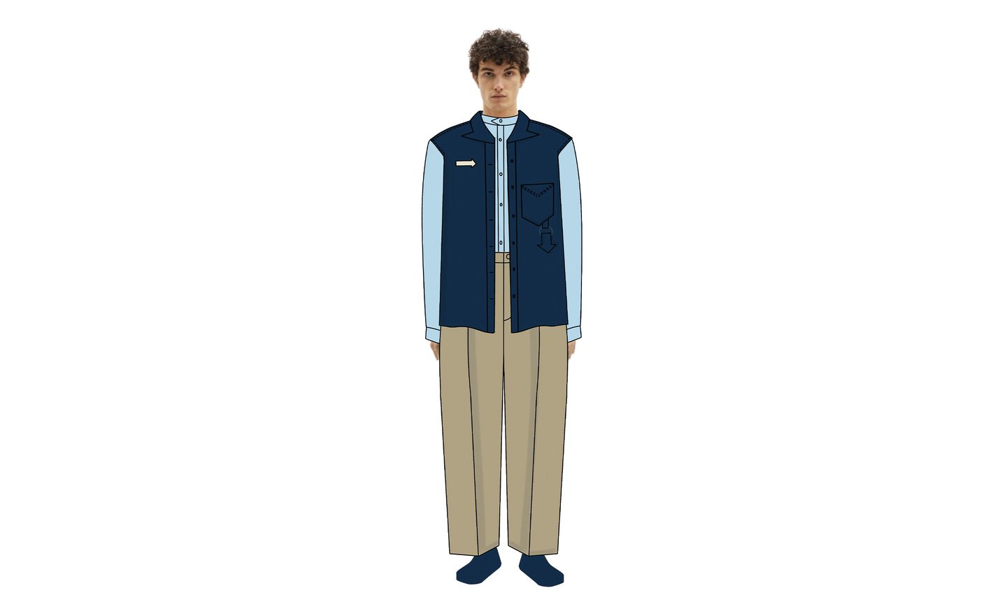 Используемые ткани: Рубашка из джинсы — 100% хлопок Рубашка — натуральные ткани (хлопок, хлопок+шёлк) Брюки — тонкая костюмная шерсть Жилет — тонкая костюмная шерсть, подкладка — 100% вискоза Юбка — тонкая костюмная шерсть, подкладка — 100% вискоза Металлический бейдж с нанесением имени