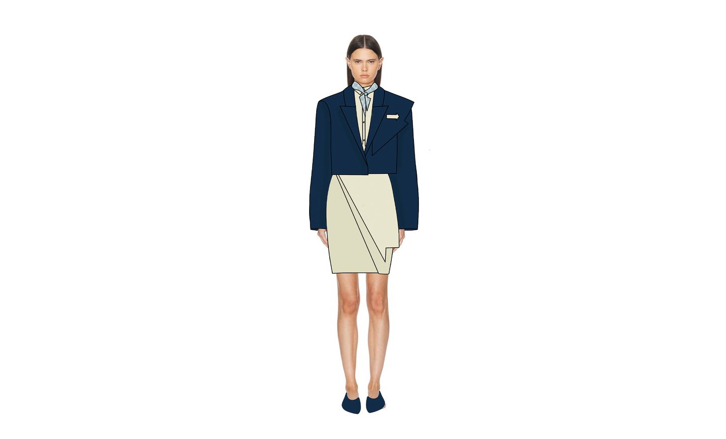 Используемые ткани: Шейный платок — шёлк Рубашка — натуральные ткани (хлопок, хлопок+шёлк) Брюки — тонкая костюмная шерсть Пиджак — тонкая костюмная шерсть, подкладка — 100% вискоза Жилет — тонкая костюмная шерсть, подкладка — 100% вискоза Юбка — тонкая костюмная шерсть, подкладка — 100% вискоза Металлический бейдж с нанесением имени