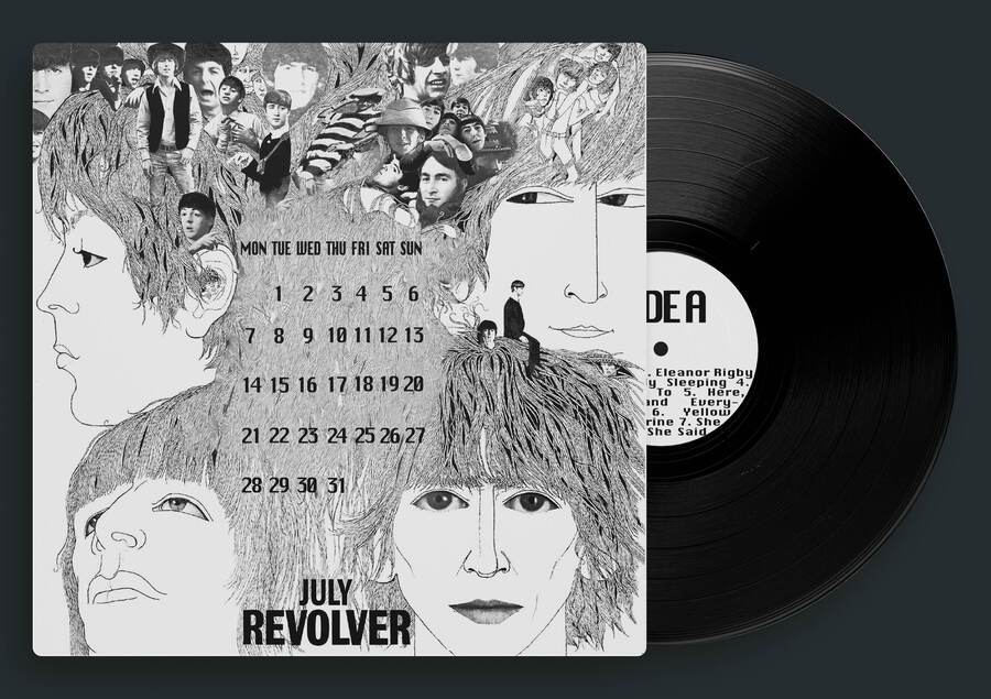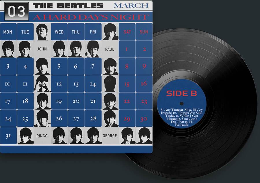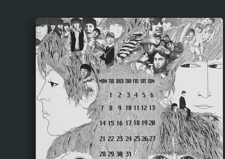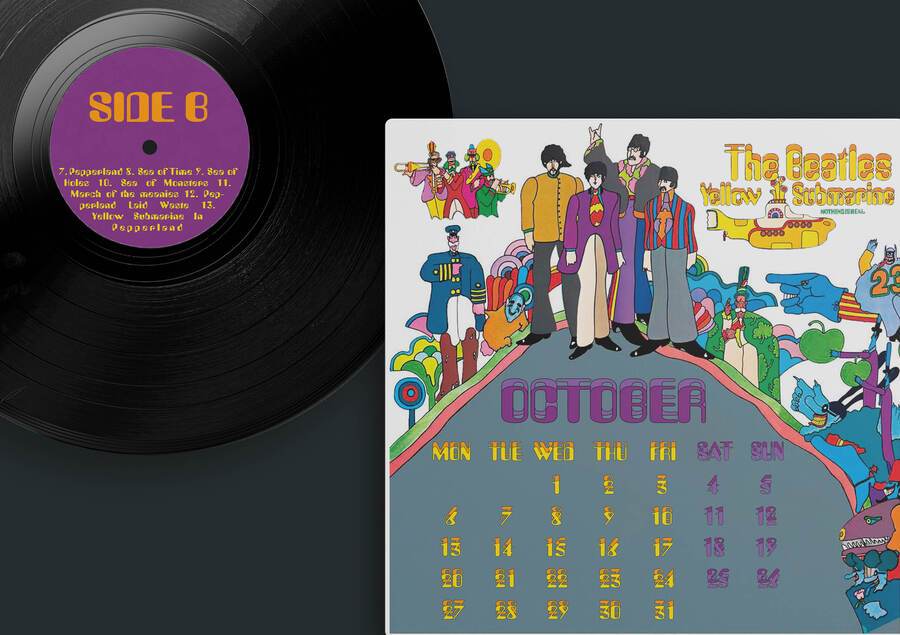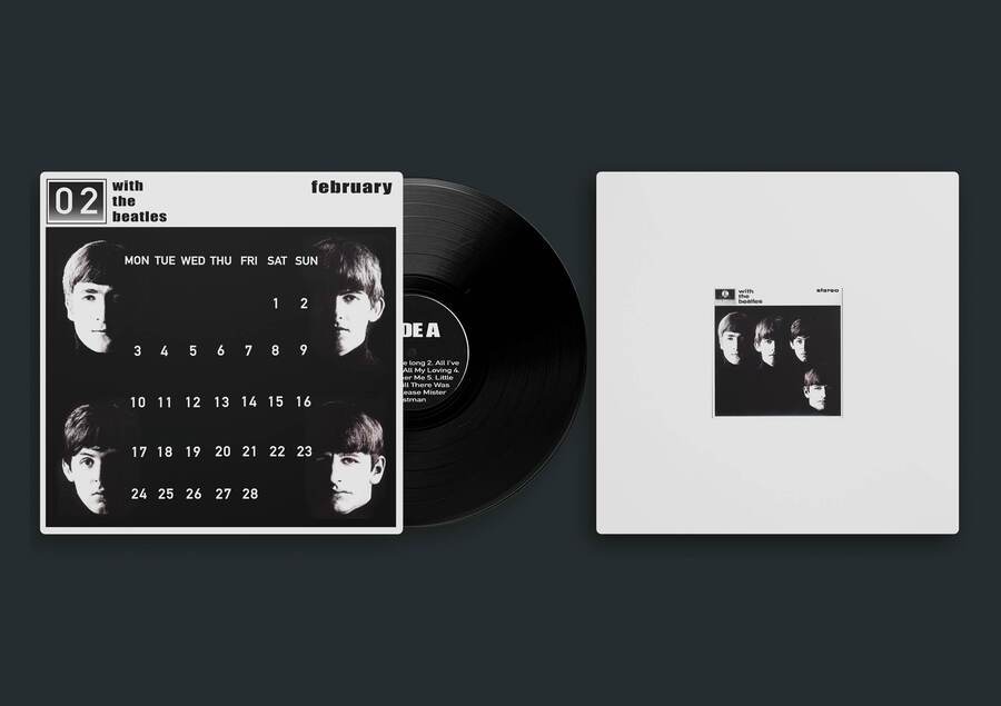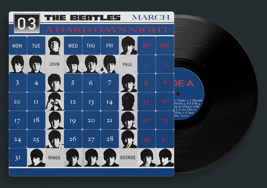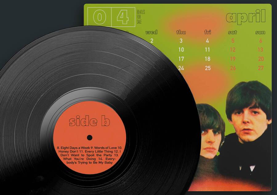 Календарь Битломана представляет собой коллекцию из двенадцати виниловых пластинок, каждая упаковка из которых исполнена в стиле одного из альбомов группы.