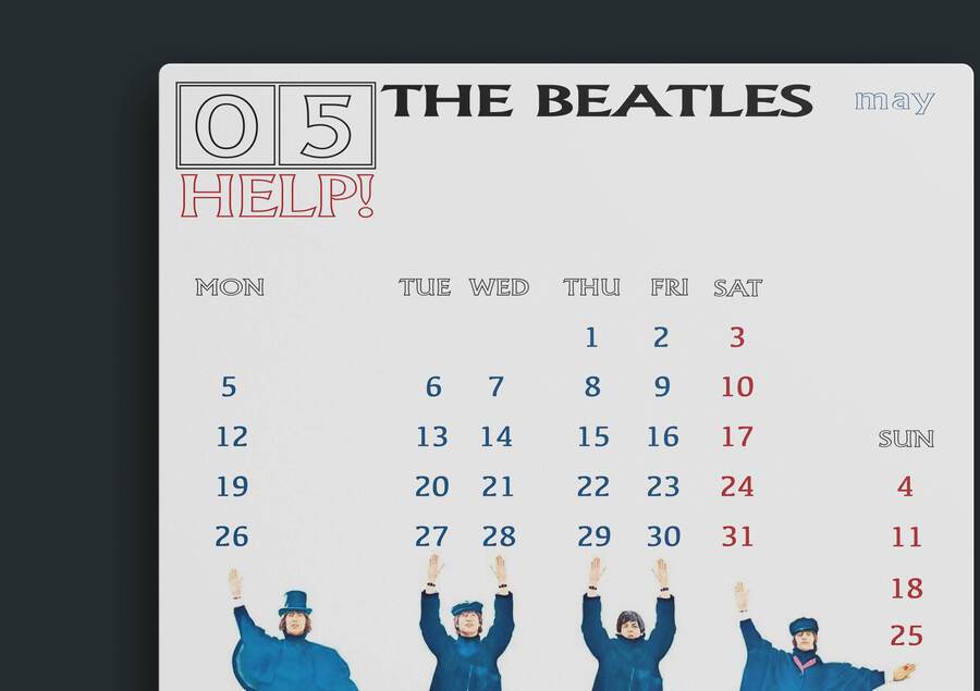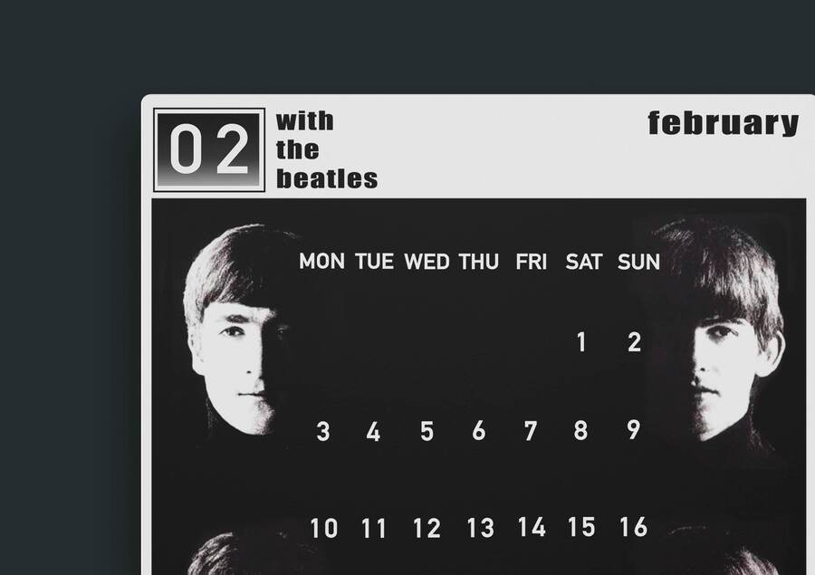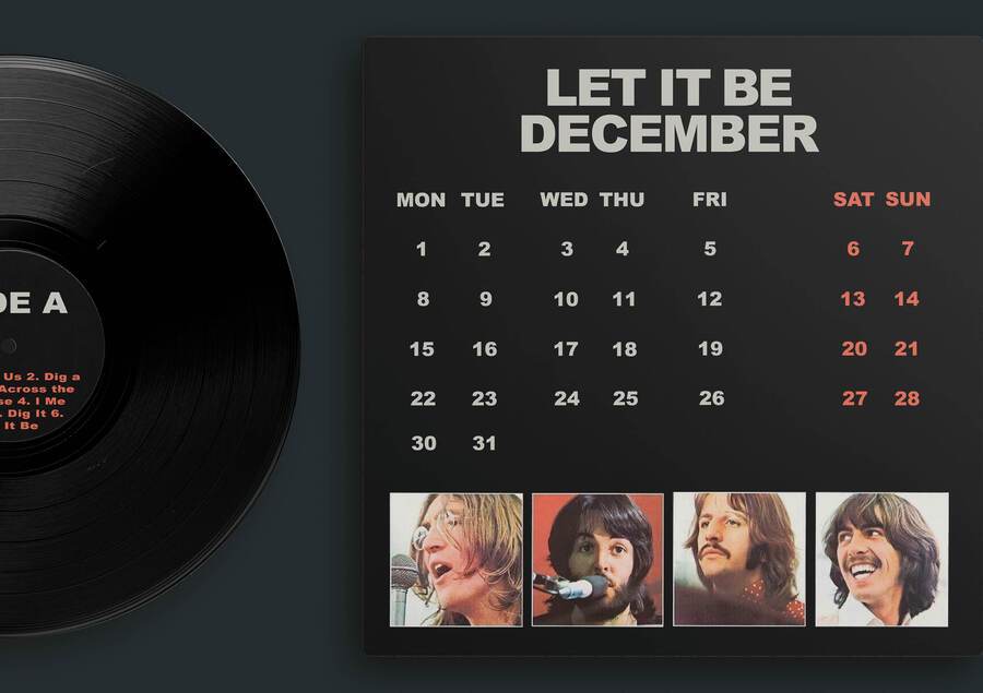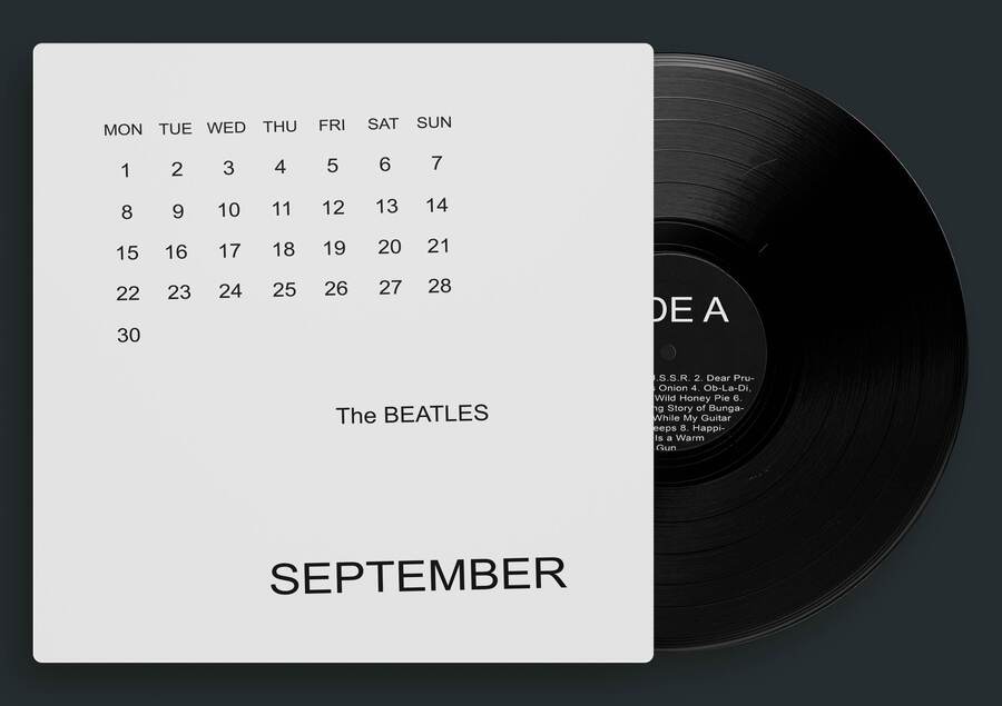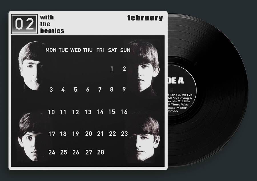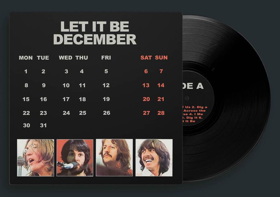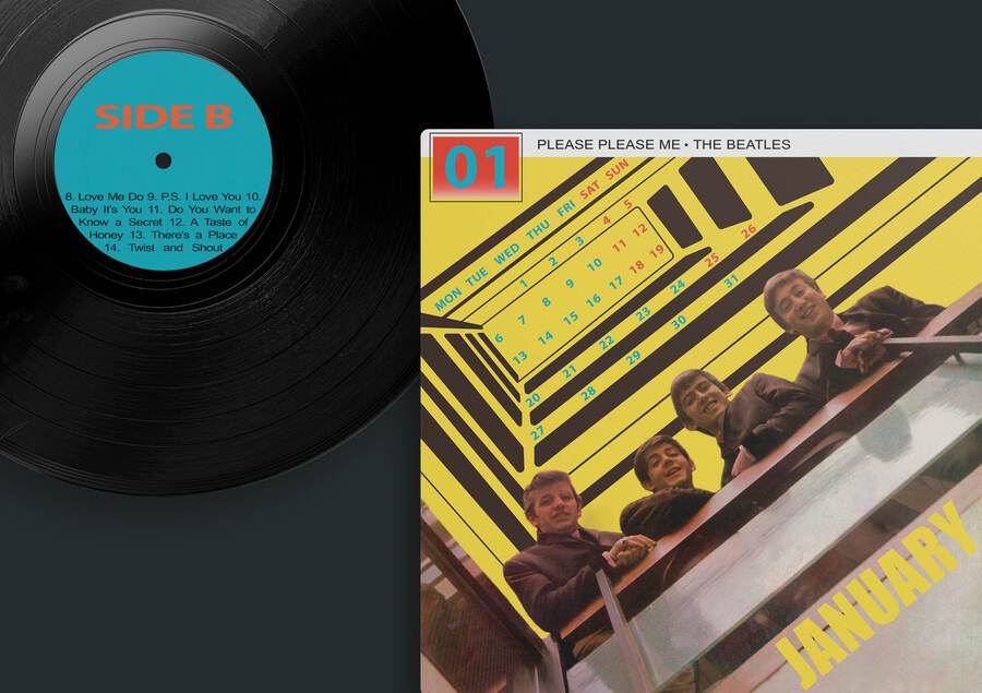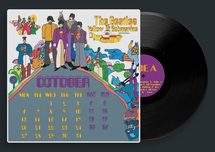 Календарь Битломана представляет собой коллекцию из двенадцати виниловых пластинок, каждая упаковка из которых исполнена в стиле одного из альбомов группы.