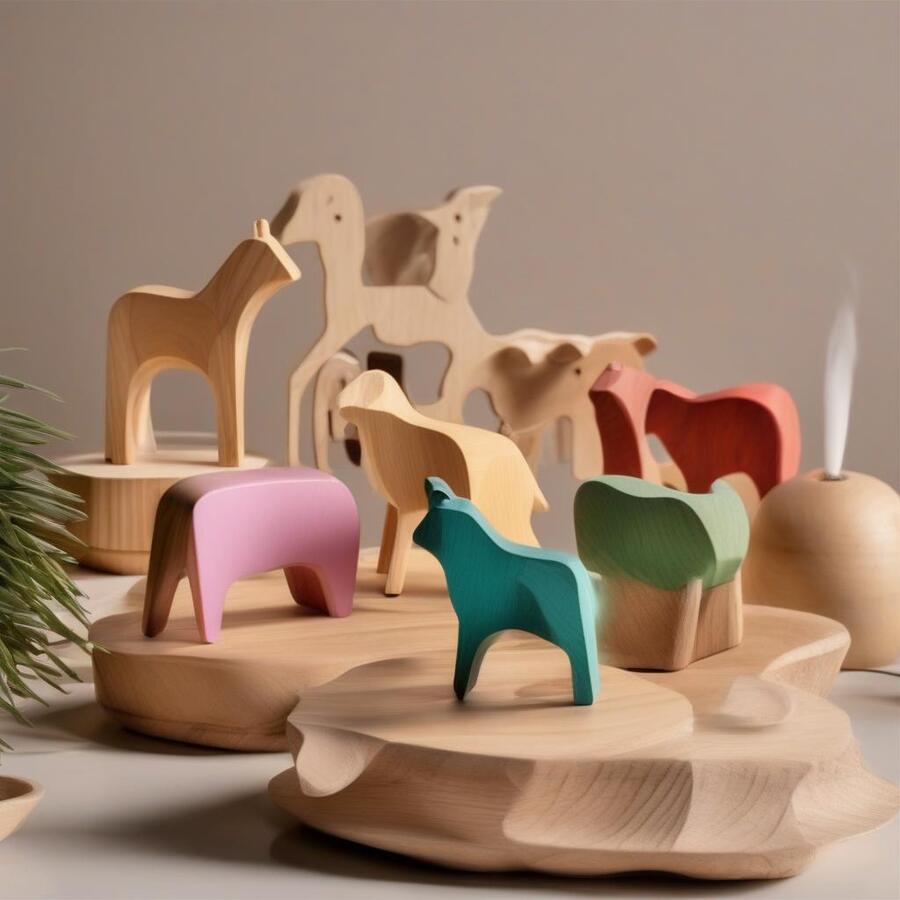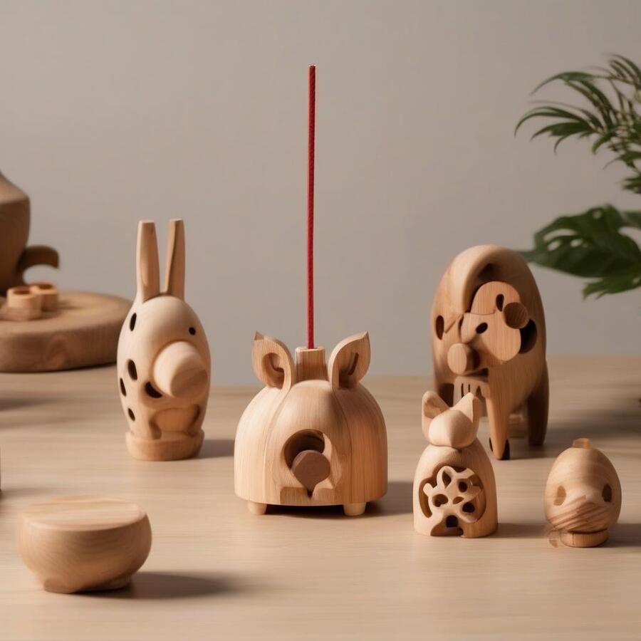 Варианты диффузоров цветные. Промпты: wooden aroma oil diffusor in shapes of domestic animals coloured, wooden aroma oil diffusor in shapes of countryside houses coloured