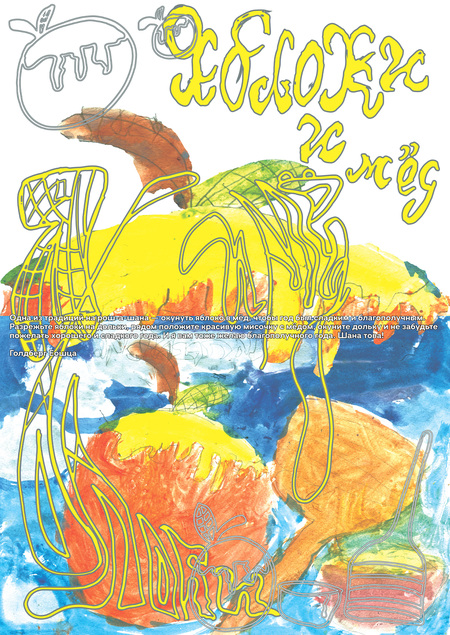 It is co-authored with a student of the Jewish school and dedicated to the traditional dish of Rosh al-Shana — apples and honey.
