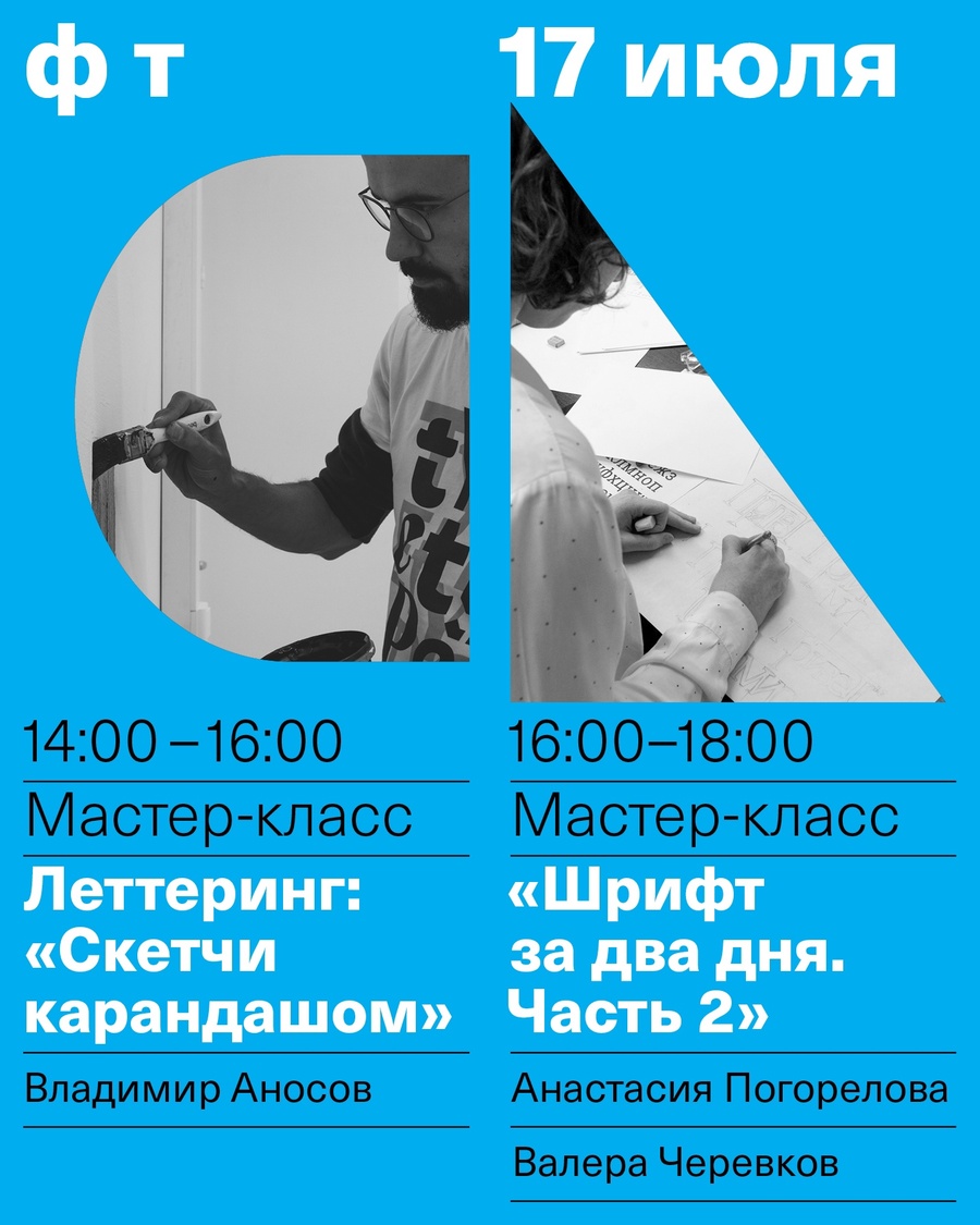 С лекциями и мастер-классами выступили Евгений Григорьев, Владимир Аносов, Артем Рулев, Никита Левцов, Никита Каменев, Валерий Черевков и Анастасия Погорелова — профессиональные дизайнеры и типографы.