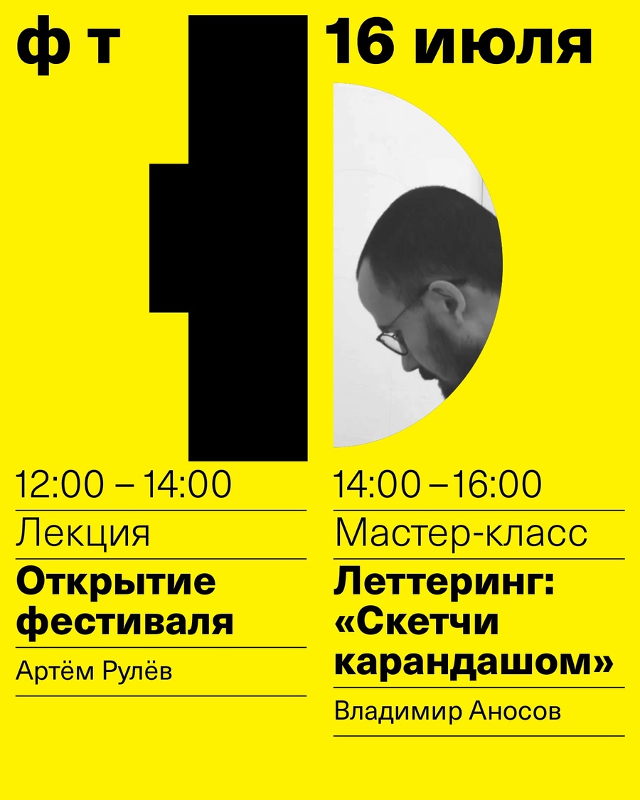 Специально для фестиваля шрифтовыми дизайнерами Артемом Рулевым и Владимиром Аносовым была разработана айдентика, подчеркивающая направленность события.