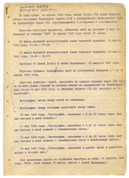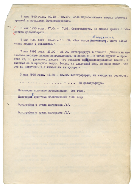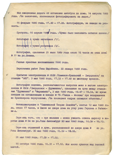 Перечень фотосерий, отобранных и логически расположенных для выставки. 1991