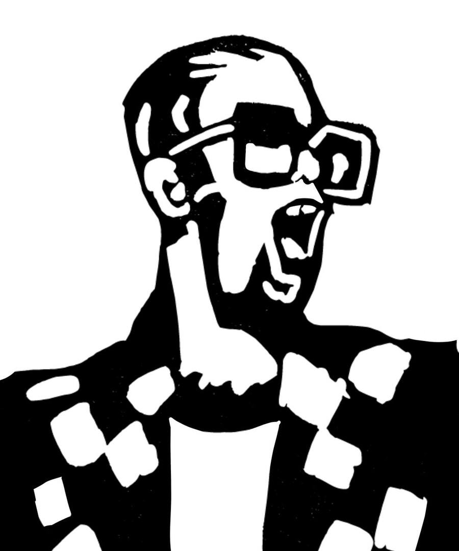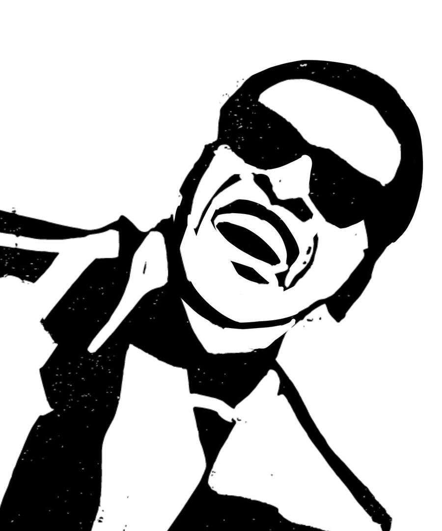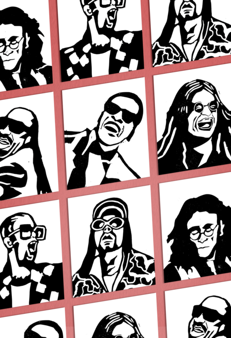 Серия портретов знаменитых музыкантов в очках, выполненная в линогравюре.