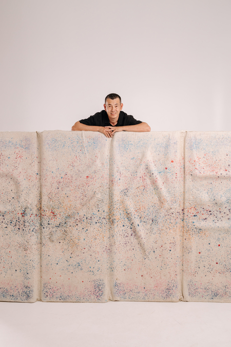 Ширма из войлока с акустическими свойствами. Работа Июля 2024 года. Размер: 3000Х1750мм, вес 40кг У ширмы две стороны, с одной стороны цветная с другой без цвета. На четырех створках нанесены объемные знаки имеющие корни из древности, это базовые знаки распространены по всей Евразии в прошлом. В знаках заложены положительные смыслы, такие как плодородие, удача, благость, дом. Акустические свойства заключается в том что войлок прекрасный звукоизолятор, ширма заглушает громкие звуки. Ширма, складывается в разные конфигурации на пример конфигурация: 1)изголовье кровати, 2)режим «телефонной будки», 3) режим ширмы. Материалы: войлок из натуральной овечьей шерсти, дерево, специальный краситель. Все Материалы биоразлагаемы. Натуральный Войлок изготовлен вручную методом мокрого валяния. Конструкция ширмы не содержит металлические механизмы, петли, системы открывания. Подвижные части «Створки», двигаются исключительно за счет гибкости и прочности материала войлок. В дизайне последней створки с тремя выпуклыми сферами на поверхности, есть отсылка к советскому фантастическому фильму «Москва-Кассиопея» а точнее к телепорту на планете Альфа, это дань моим детским впечатлением от фильма