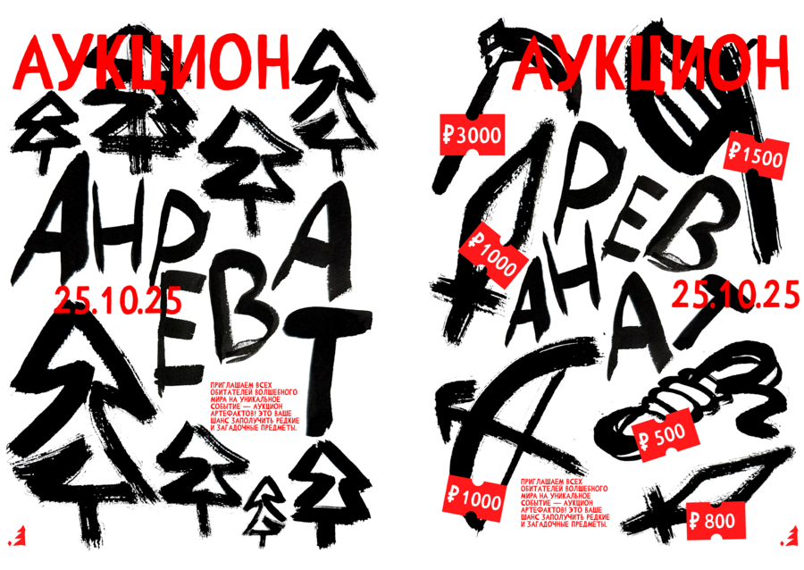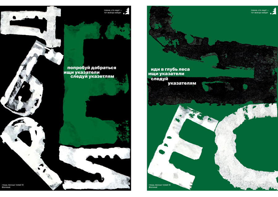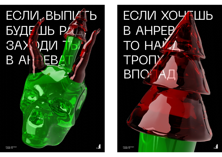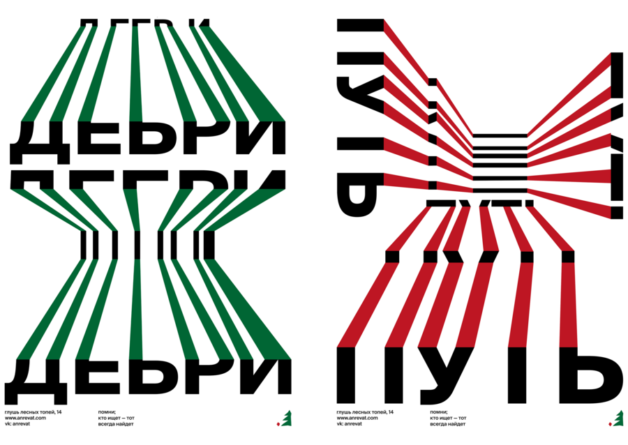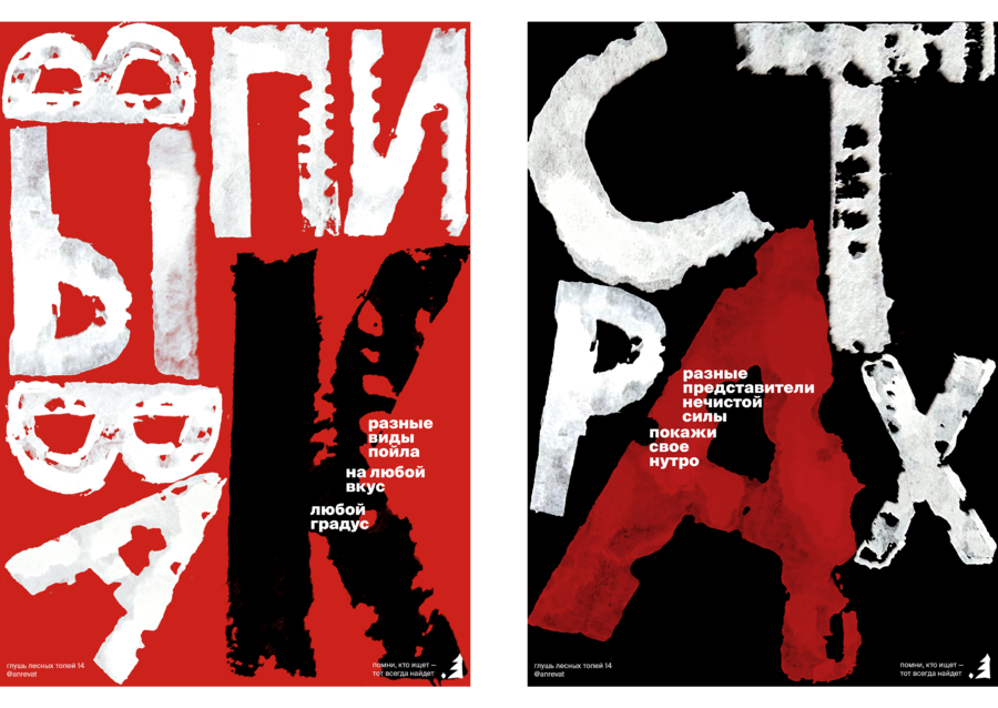 Первая типографическая серия выполнена с помощью оттисков. Плакаты наполнены ассоциативными словами проекта. Получившаяся многоплановость букв олицетворяет трудный путь до Анревата.