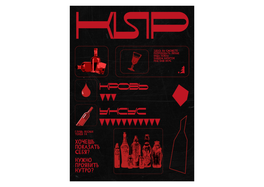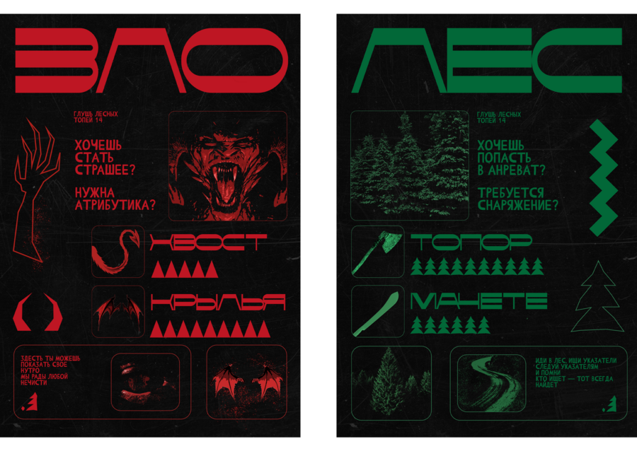 Первая графическая серия — варианты того, что можно купить в Анревате. Поскольку на создание проекта вдохновило прохождение «Ведьмака», плакаты отсылают к игровому интерфейсу.