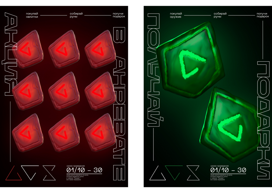 Вторая графическая серия — рекламные плакаты к акции в Анревате. За покупки в обратной таверне выдаются руны, которые впоследствии можно обменять на подарки.