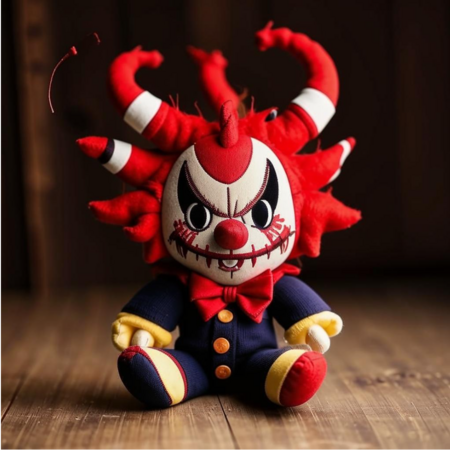 Промпт: Милая плюшевая игрушка демоненка-клоуна
