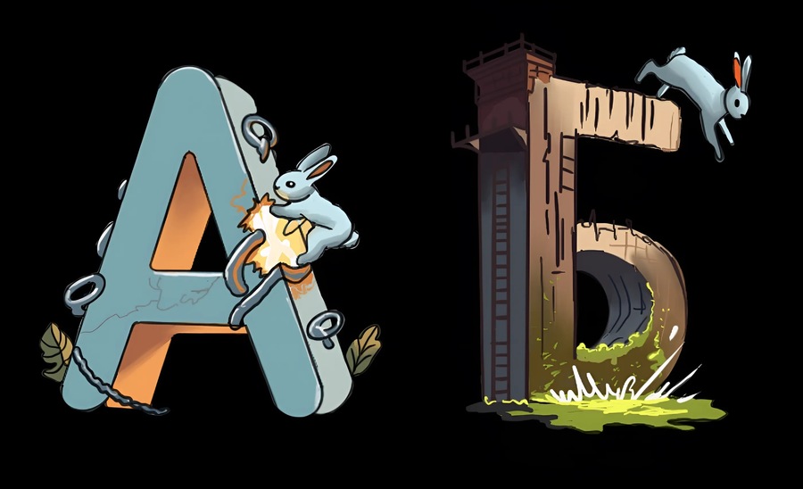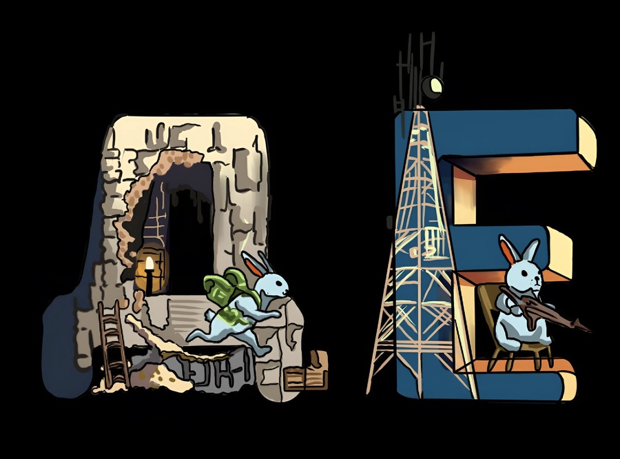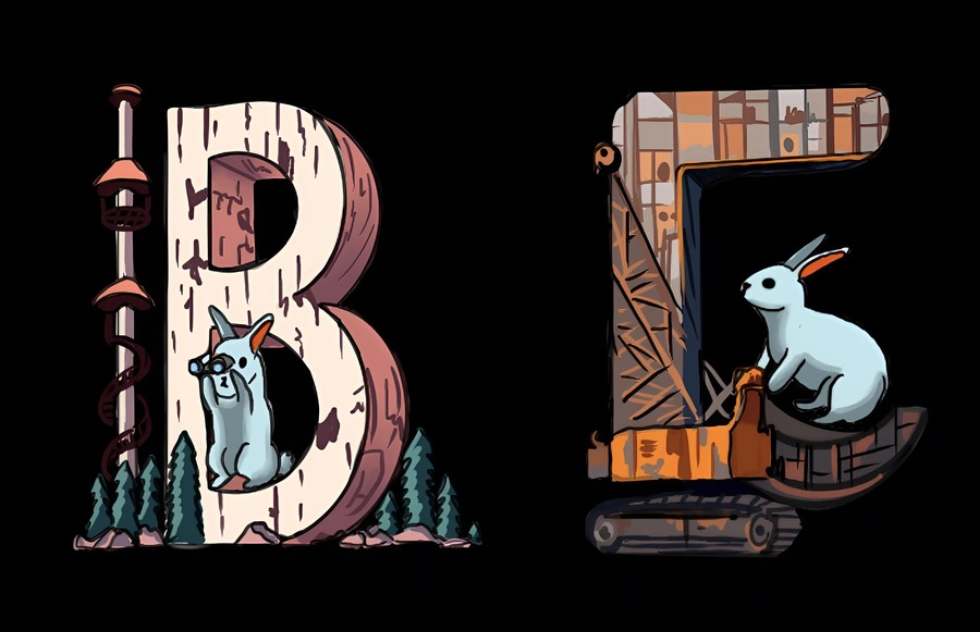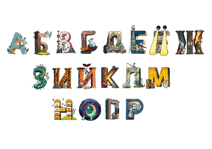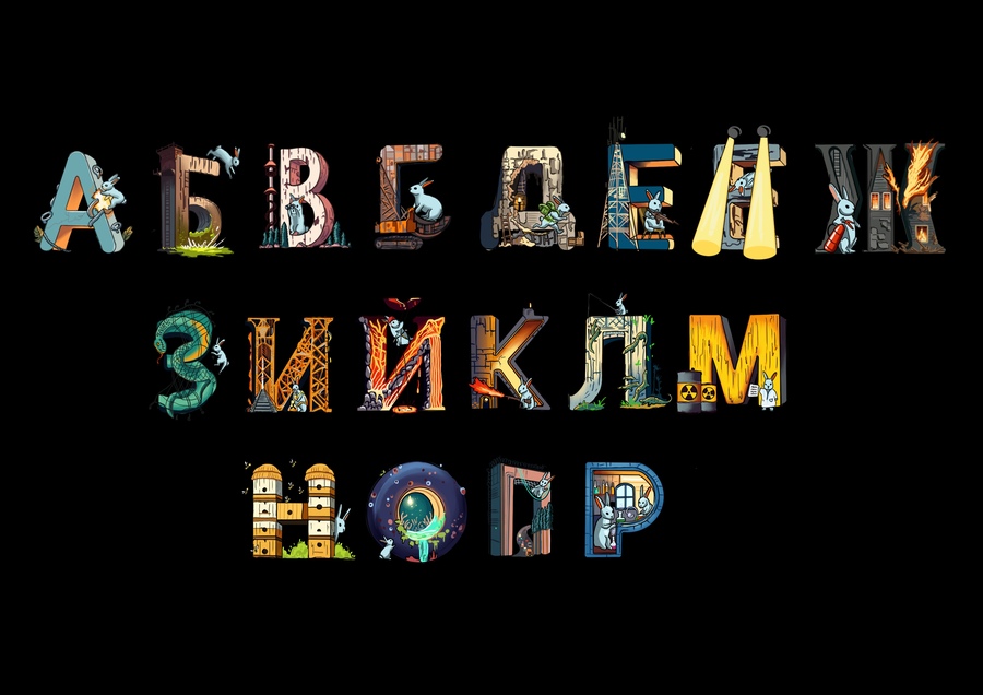 Иллюстративный алфавит (буквицариум) с главным героем — кроликом, выживающем в апокалипсисе. Каждая буква — это один эпизод из его приключений в мире апокалипсиса. Что ждет нашего героя: логово ящериц, радиация или жгучая лава?