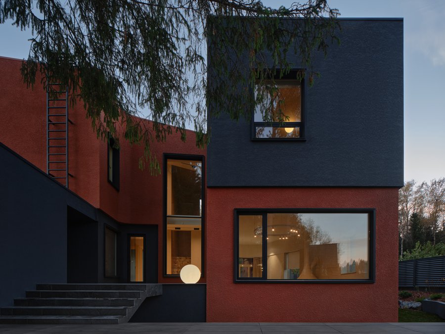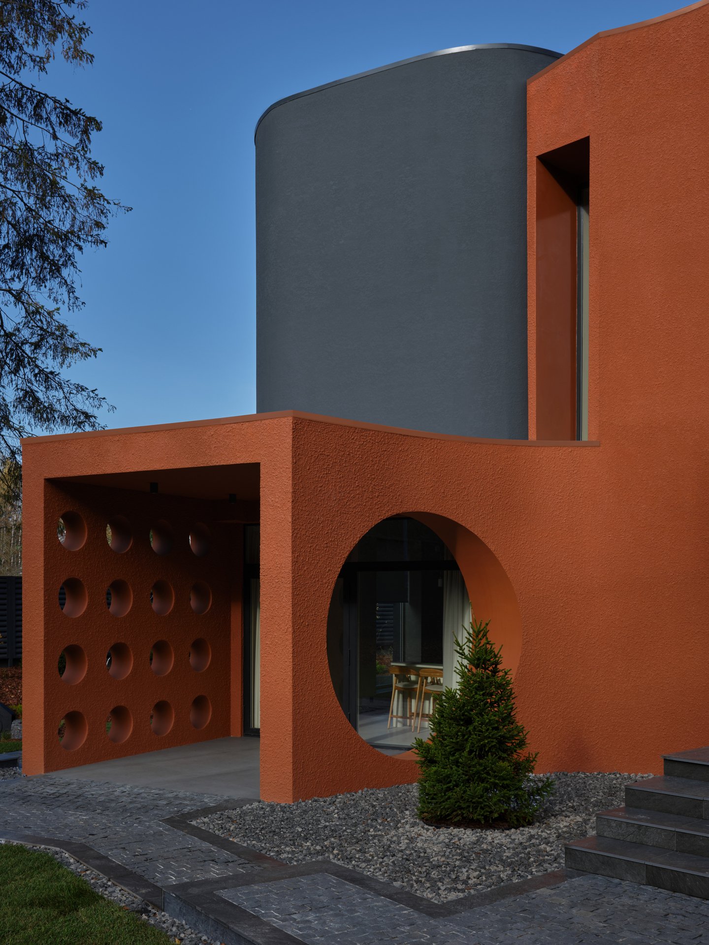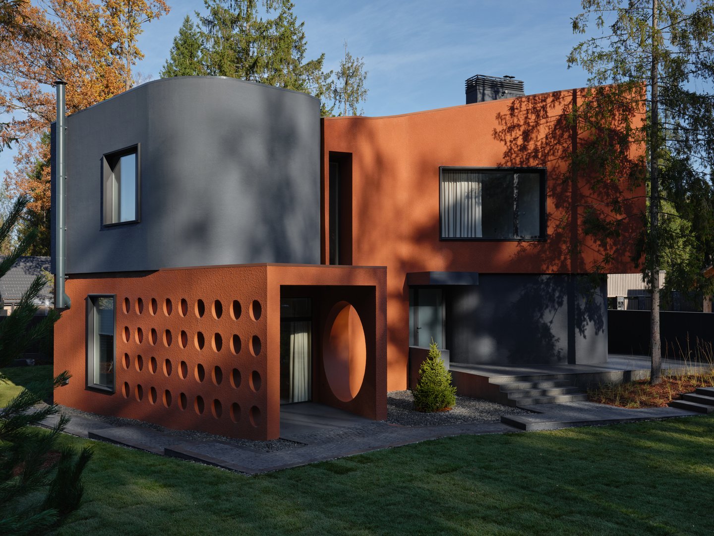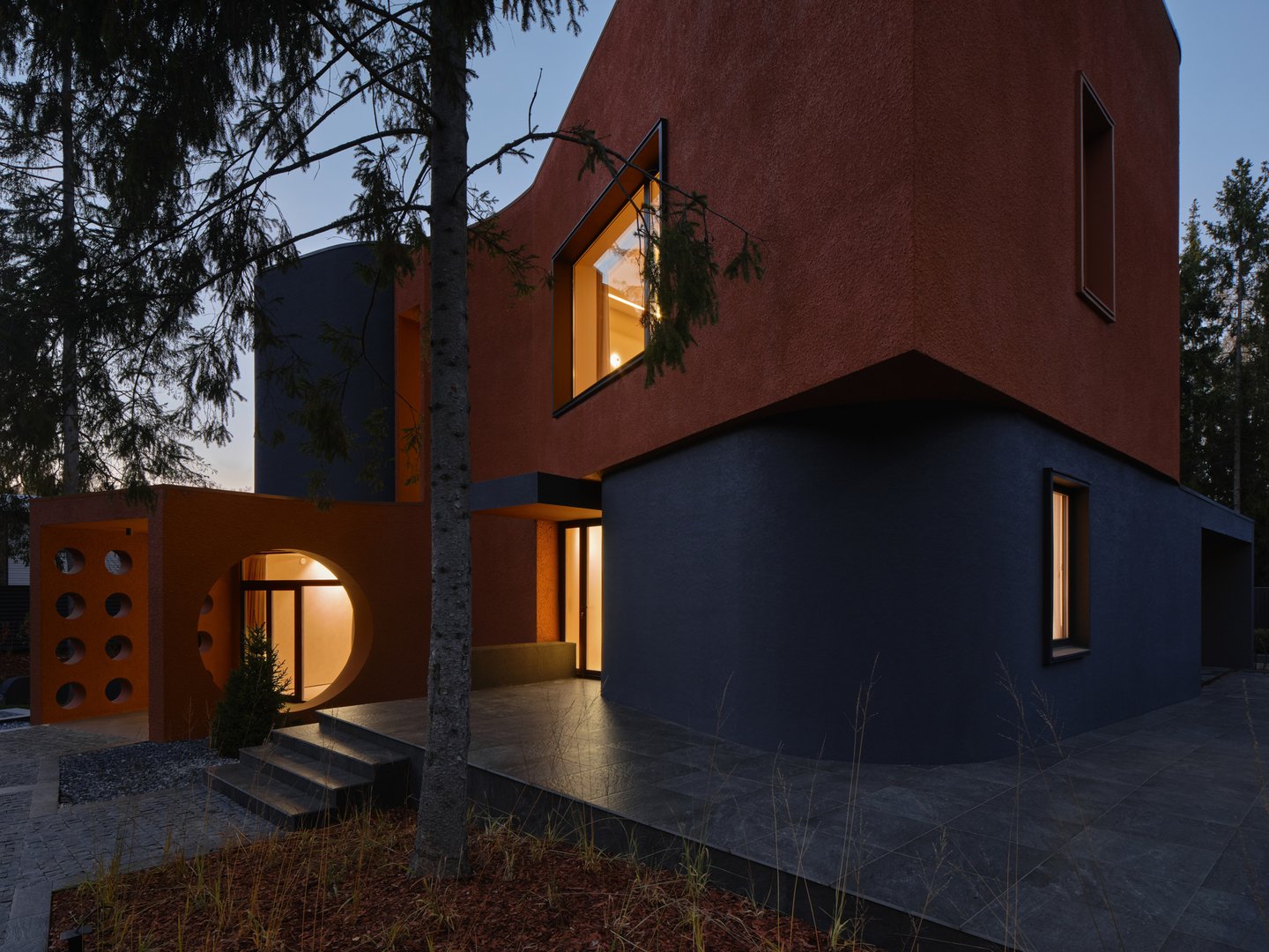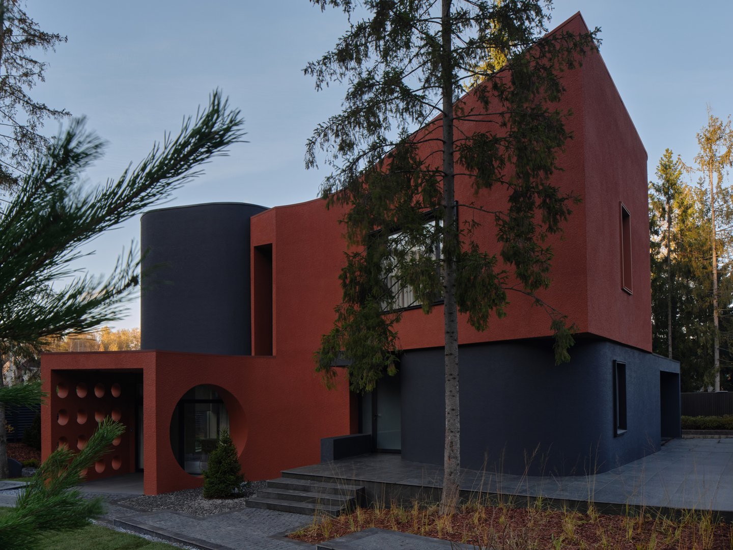 This sculptural home, composed of interlocking volumes, serves not only its functional purpose but also operates as a reflection on a topic relevant to our times — the crisis of meaning. The project questions the prevailing architectural dogma that everything must serve a specific purpose, that beauty, harmony, and composition cannot exist without rational justification.