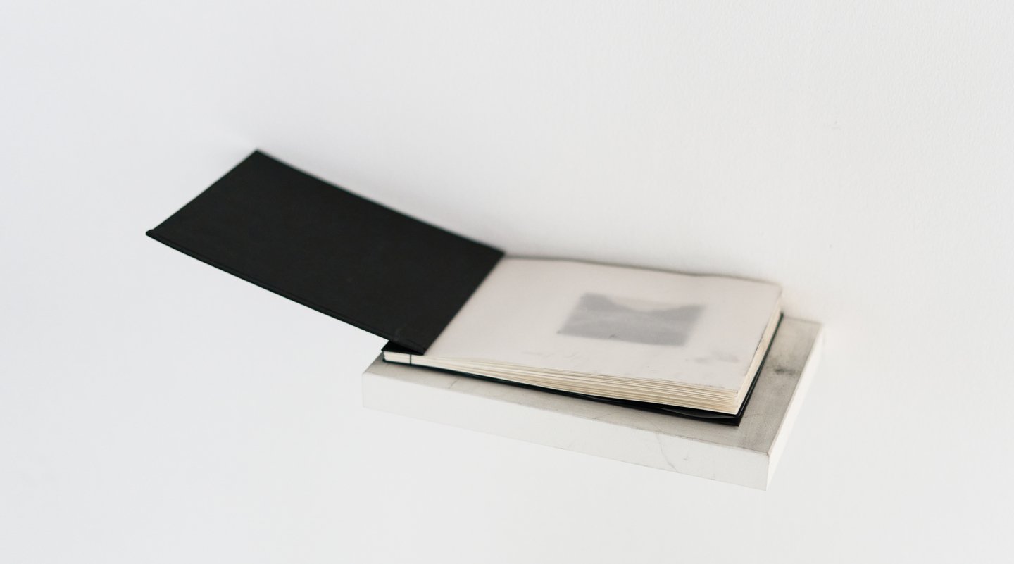 The cover is covered with coal, so on the exhibit those who licked the book inevitably left their mark in they left their mark.