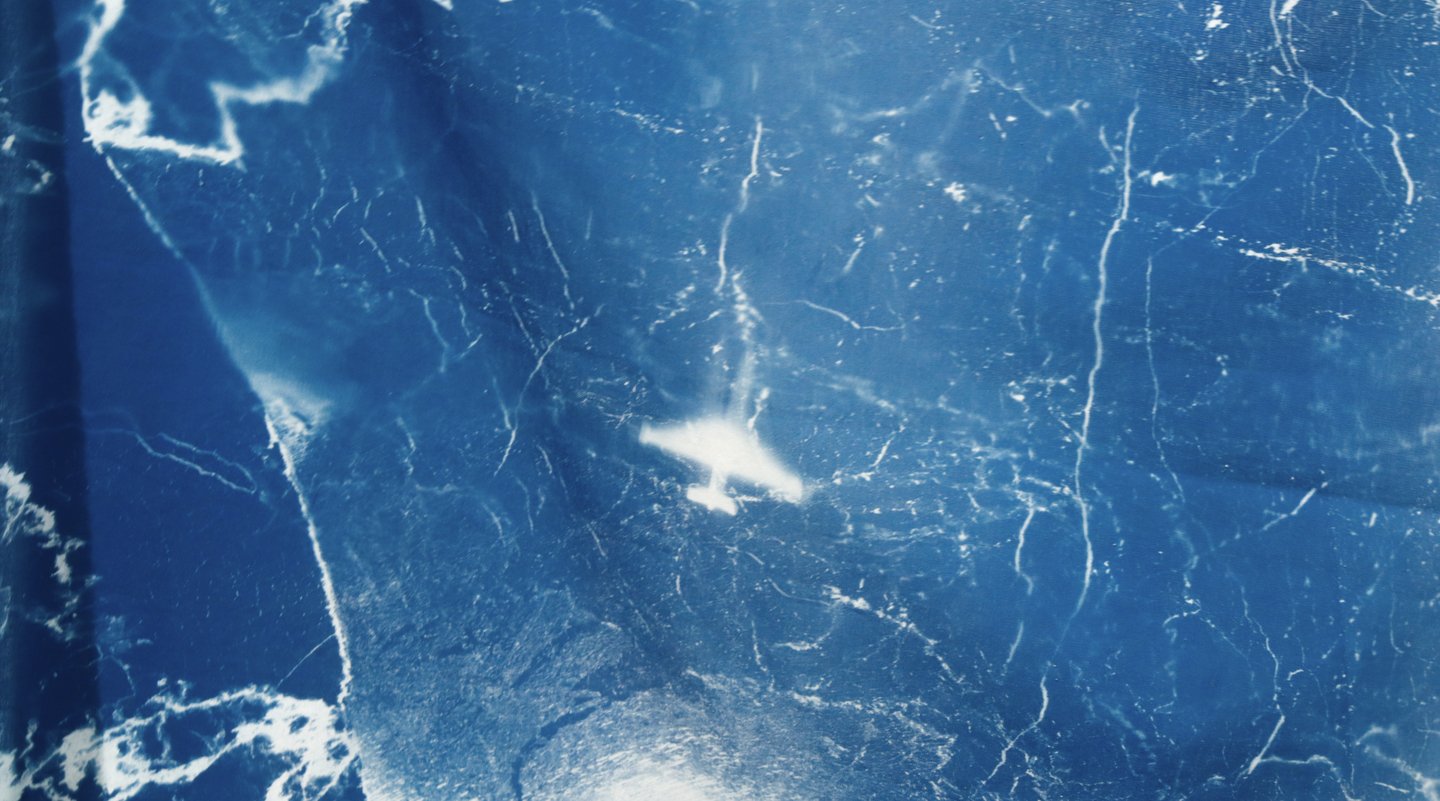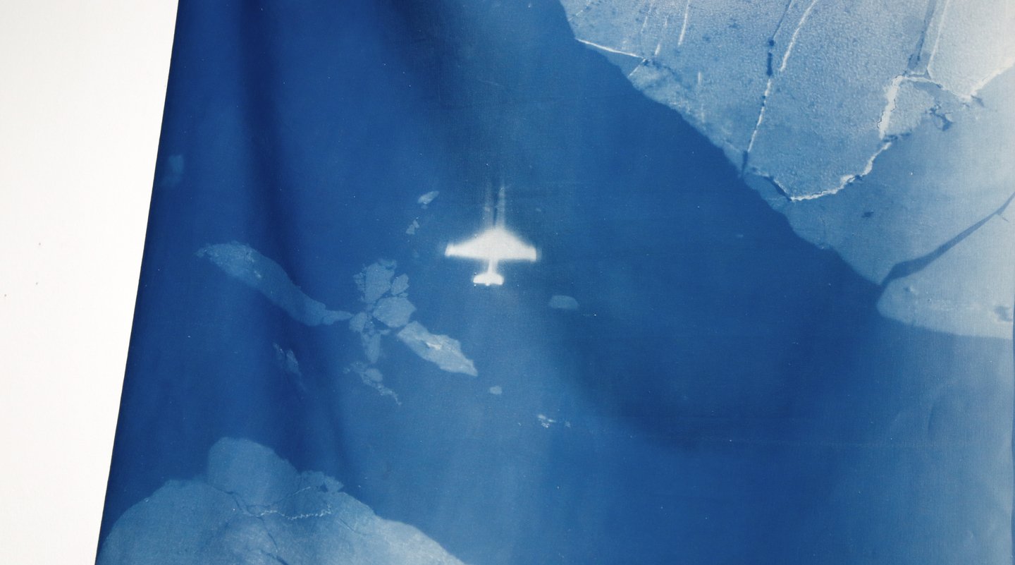 In work done in cyanotype technique, Baikal ice and the piggyback plane connects in one painting. In my hometown has resumed the work of the Defense Department and now planes fly very often over the roofs. I can imagine how huge and sombre they can be over houses, and how small and how lonely they can be over Baikal’s ice.