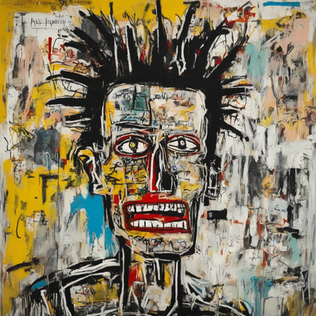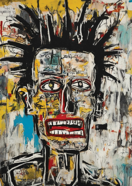 Для этого проекта я решила обучить нейросеть Stable Diffusion XL создавать изображения в узнаваемом стиле Жана-Мишеля Баския — одного из самых влиятельных художников нео-экспрессионизма конца XX века.