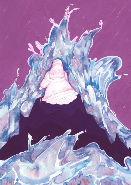 Наблюдая за дождем, героиня понимает, что капля, упавшая на ее ладонь — это малая частичка, из подобных которой состоит бушующее, завораживающее своей красотой море.