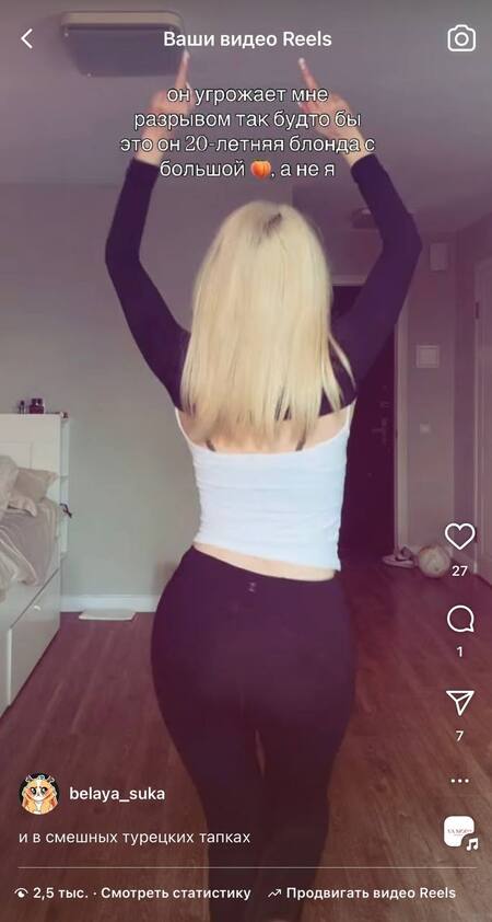 Просмотры: 2500 Лайки: 27 Поделится: 7 Сохранения: 1 Ссылка: https://www.instagram.com/reel/DJrNFlStmY4/?igsh=N2hwc3MwODc5OXZ2