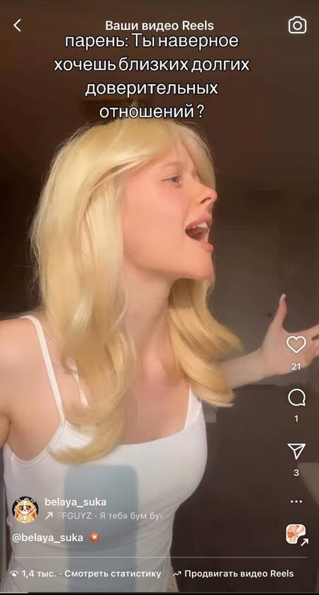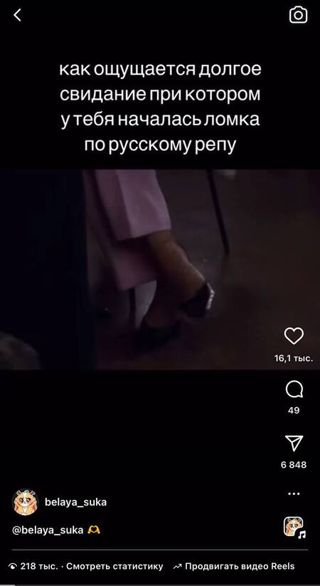 Просмотры: 2800 Лайки: 17 Поделится: 4 Сохранения: 1 Ссылка: https://www.instagram.com/reel/DKh8ayYtX7r/?igsh=ZjlwMzFsaDd3Nm95 *
