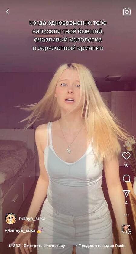 Второе видео, которое получило популярность, было сделано под очень популярный трек из русского рэпа, ставший любимым звуком для мемов и танцев. Оно также содержало оригинальную идею. Однако была допущена фактическая ошибка, о которой мне написали около 20 человек.